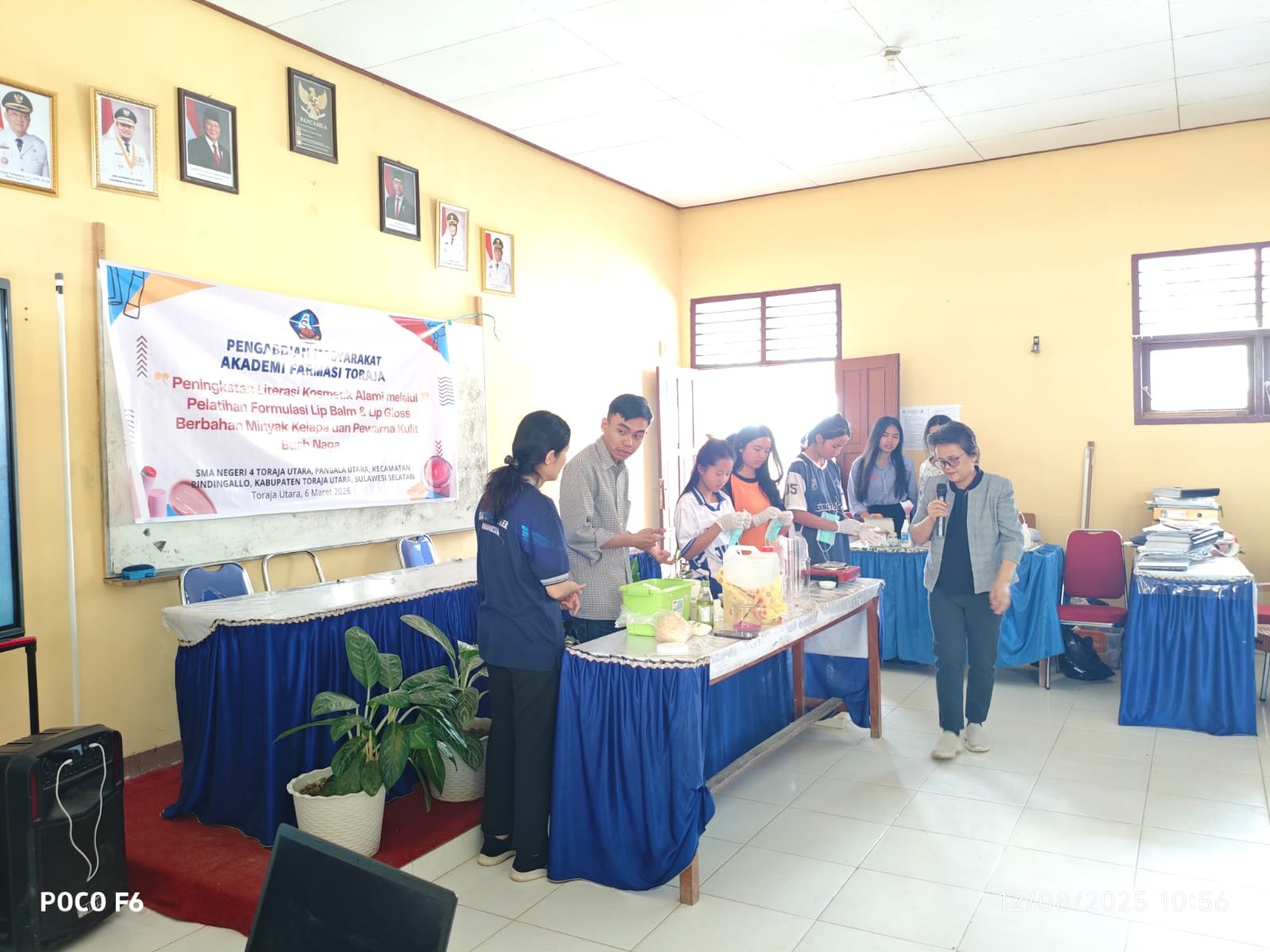 Kegiatan edukatif ini diselenggarakan pada Kamis, 12 Agustus 2025, bertempat di SMA Negeri 4 Toraja Utara, Pangala Utara, Kecamatan Rindingallo, Kabupaten Toraja Utara. Lokasi yang berada di wilayah pegunungan ini memiliki tantangan tersendiri dalam akses produk kecantikan komersial, sehingga edukasi mengenai kemandirian produksi kosmetik alami menjadi sangat relevan. Sebanyak puluhan siswi mengikuti rangkaian acara dengan antusias, menyimak materi tentang bahaya kandungan logam berat dalam kosmetik ilegal serta keunggulan bahan organik sebagai alternatif jangka panjang.