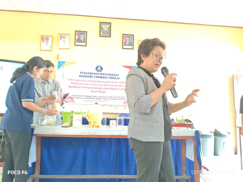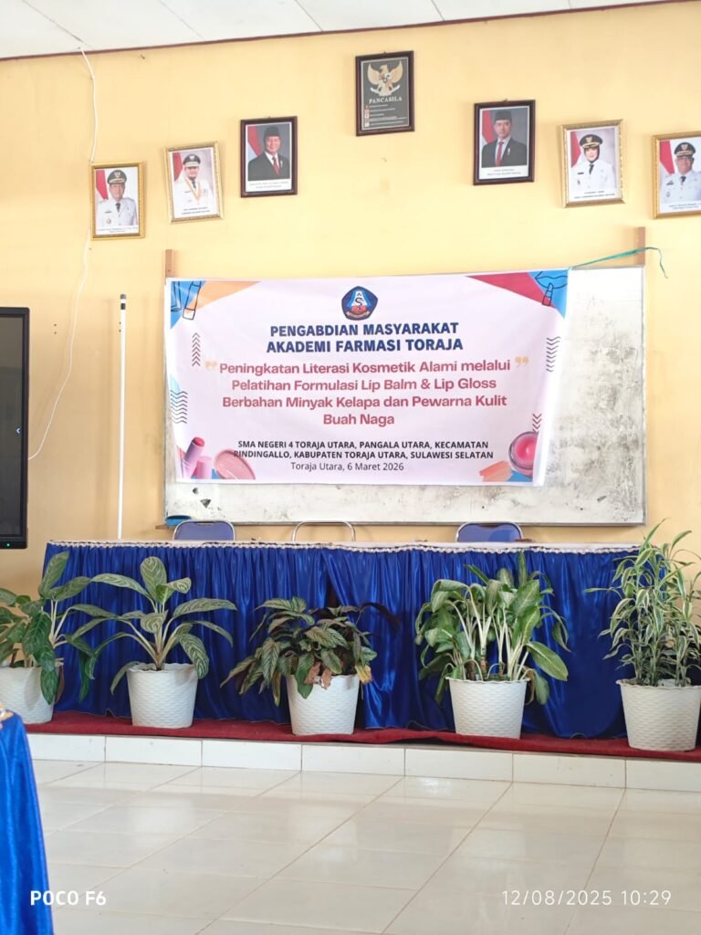 Kesadaran akan pentingnya penggunaan produk kecantikan yang aman dan bebas bahan kimia berbahaya kini mulai merambah ke kalangan remaja. Sebagai upaya nyata dalam mengedukasi generasi muda, tim dosen dan mahasiswa dari Akademi Farmasi Toraja melaksanakan kegiatan Pengabdian kepada Masyarakat (PkM) dengan fokus pada literasi kosmetik alami. Kegiatan ini bertujuan untuk memberikan pemahaman teknis serta praktis kepada para siswi mengenai cara memanfaatkan potensi bahan alam di sekitar mereka menjadi produk kosmetik dekoratif yang memiliki nilai guna sekaligus aman bagi kesehatan kulit bibir.